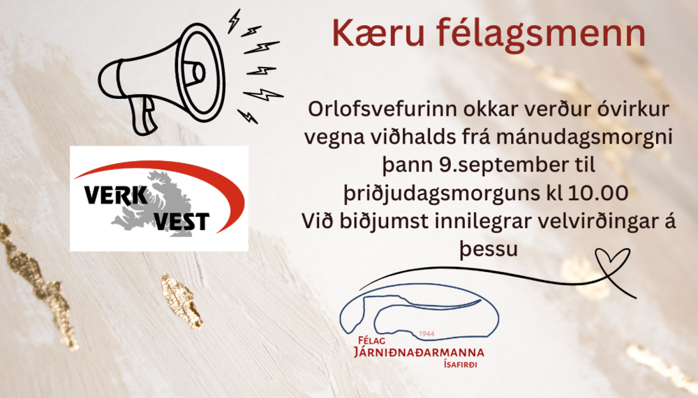 Orlofsvefurinn okkar mun liggja niðri á mánudag og þriðjudag í næstu viku